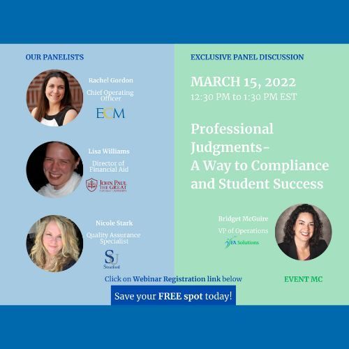 Learn from the industry experts on how are they are following guidelines to Professional Judgement and making Financial Aid easier.
