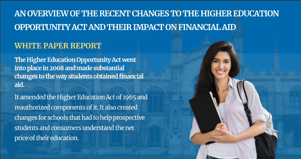 The Higher Education Opportunity Act went into place in 2008 and made substantial changes to the way students obtained financial aid.